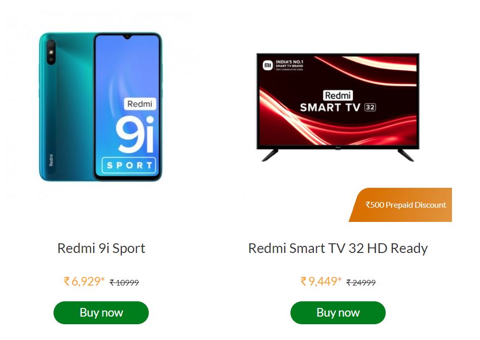 Xiaomi का स्मार्ट टीवी Xiaomi Smart TV X43 सेल में मात्र 24,999 रुपये में खरीदा जा सकता है। इसकी मार्केट में कीमत 28,999 रुपये है। रेडमी के स्मार्ट टीवी Redmi Smart TV 32 HD Ready को खरीदते हैं तो इस पर भी 5000 रुपये का डिस्काउंट पा सकते हैं।13,999 रुपये में आने वाले इस स्मार्ट टीवी को सेल में मात्र 8,999 रुपये में खरीद सकते हैं।