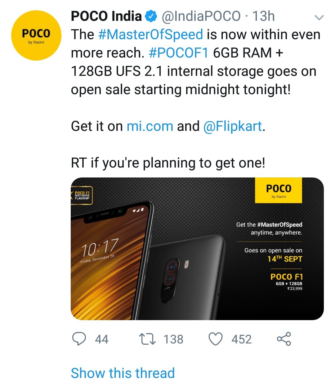 POCO F1 खरीदने वालों के लिए खुशखबरी, आज से शुरू हो रही है ओपन सेल