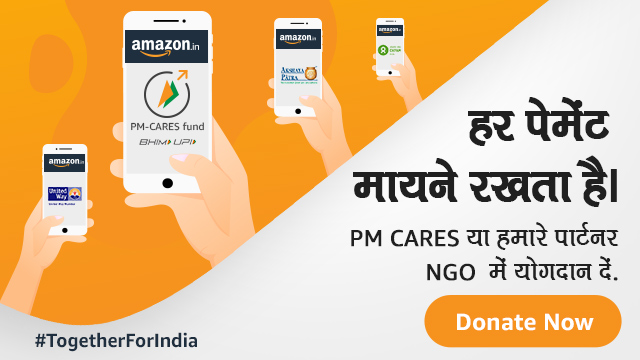 Amazon की मदद से आप न केवल सुरक्षित तरीके से PMCARES FUND में पैसे डोनेट कर सकते हैं, बल्कि जरूरतमंदों और हेल्थ वर्कर्स की सहायता करने वाले NGO को भी सीधे अपना योगदान दे सकते हैं। यह ध्यान रखिए कि योगदान के रूप में दी गई हर राशि कोरोना से लड़ाई को जीतने में बड़ी भूमिका निभा सकती है, क्योंकि ऐवरी पेमेंट काउंट!