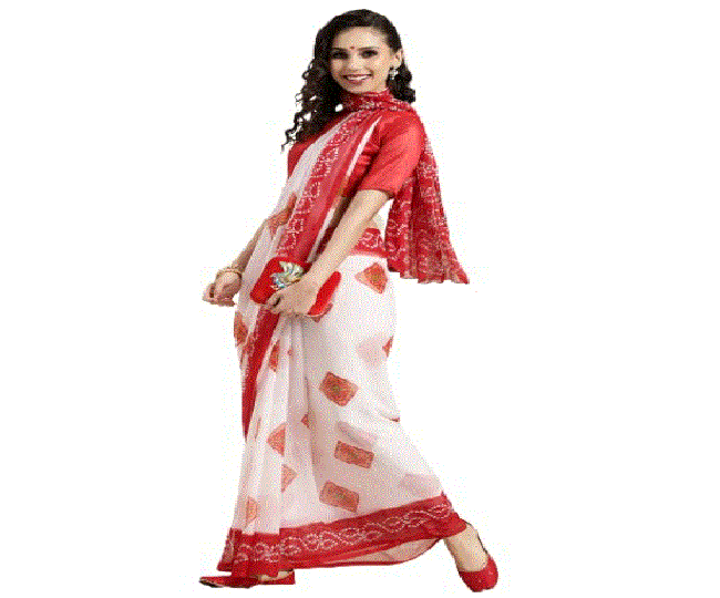 AKHILAM Saree का फैब्रिक फैब्रिक शिफॉन है और इस पर बहुत ही सुंदर बांधिनी प्रिंट किया हुआ है। यह लाल और सफेद रंग की साड़ी पहनने पर बहुत ही ट्रेडिशनल और रॉयल लुक देती है। Amazon sale offers में इसको आप 1660 रूपये के डिस्काउंट पर खरीद सकते हैं। AKHILAM Saree Price: Rs 339.