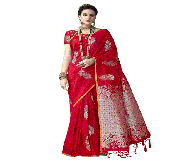 यह रेड कलर की Designer saree बहुत ही सुदंर है, इस पर गोल्डन वर्क इसको और आकर्षक बनाता है। इस साड़ी को 3 हजार से ज्यादा यूजर्स ने खरीदा है। Amazon sale 2022 में इसको आप 3851 रुपये की महाबचत कर अपनी वार्डरोब में शामिल कर सकती हैं। VARKALA SILK Saree Price: Rs 949.