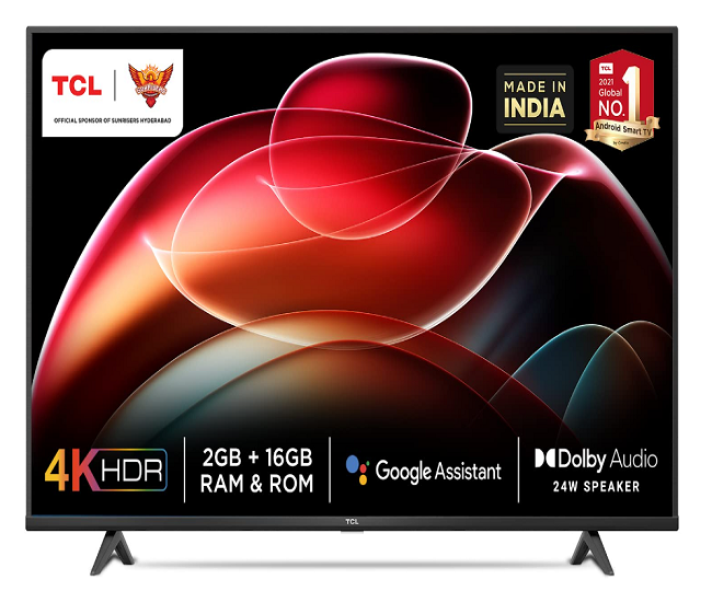4. TCL 108 cm (43 inches) 4K Ultra HD Android Smart LED TV - 48% Off
