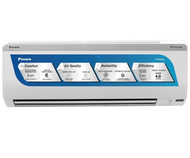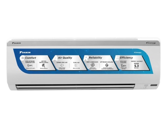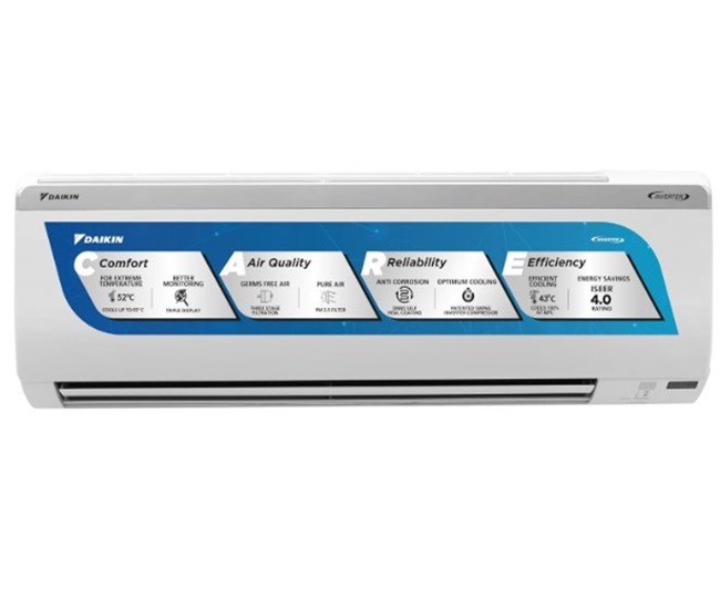 इसकी 0.8 टन कैपेसिटी कूलिंग के लिए सूटेबल है। इन्वर्टर कंप्रेसर के साथ डाइकिन एसी गर्मी के आधार पर बिजली को एडजस्ट करता है और बिजली की अधिक खपत को रोकता है। Daikin Split AC Price: Rs 25990.