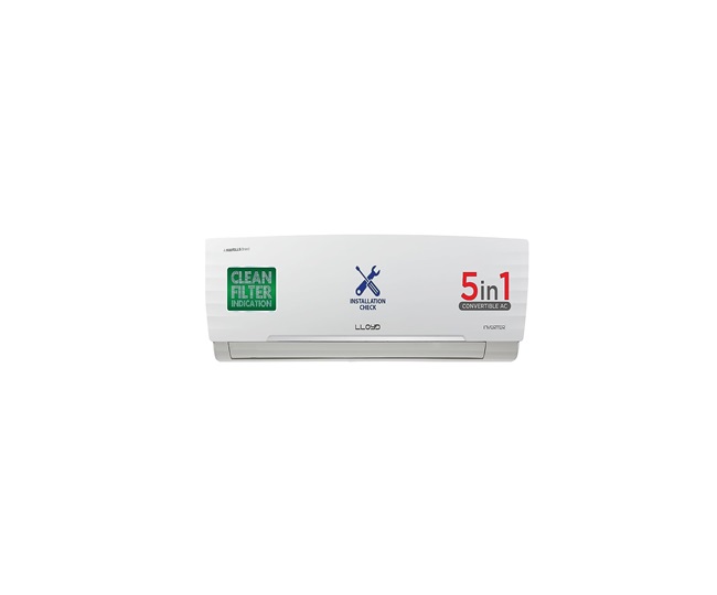 इन्वर्टर कंप्रेसर के साथ आ रहे इस लॉयड स्प्लिट एसी रिमोट कंट्रोल के जरिये कूलिंग को एडजस्ट करता है। इसमें ब्लू फिन्स इवेपोरेटर कॉइल्स लगा है। 2 वे एयर स्विंग के साथ 52 डिग्री सेल्सियस के तापमान पर भी रूम को ठंडा कर देता है। एसी में स्टेबलाइजर फ्री ऑपरेशन होता है। इसमें एडजस्टेबल मोड भी दिया जा रहा है और यह एंटीडस्ट फिल्टर से भी लैस है।