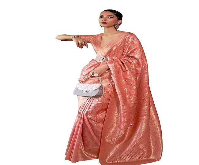 पार्टी वियर, शादी, फंक्शन आदि में इस सिल्क साड़ी को पहन सकते हैं। इसका पीच कलर महिलाओं पर काफी ज्यादा खिलता है। साथ ही इसके साथ ब्लाउज पीस भी मिलता है, जिसे आप अपने अनुसार सिल्वा सकती है।