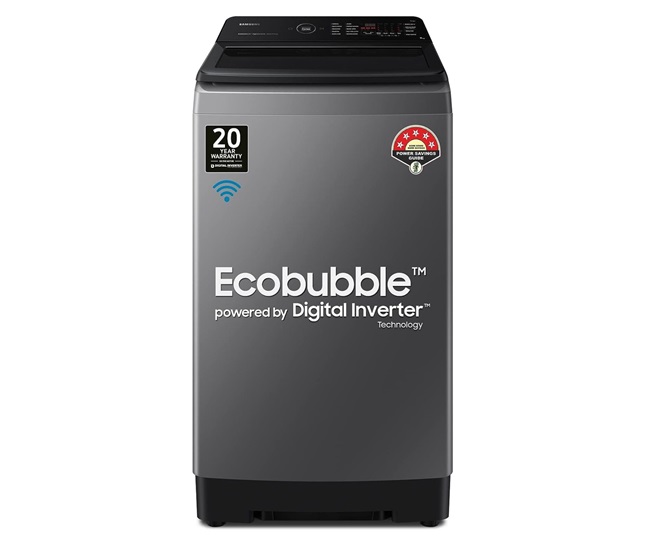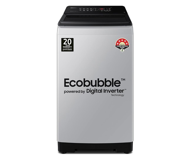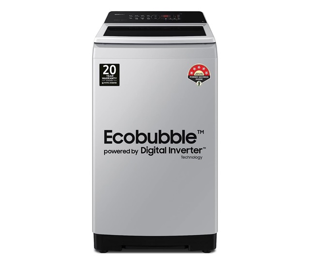 सैमसंग की 8 किग्रा की कैपेसिटी में इको बबल टॉप लोड वॉशिंग मशीन को आप अपने लिए चुन सकते हैं। इसमें डिजिटल इंवर्टर की बेहतर तकनीक कपड़ों के जिद्दी दाग-धब्बे गहराई से साफ कर कपड़ों की चमक बरकरार रखते है। Samsung में कम डिटर्जेंट के साथ ही ज्यादा झाक से कपड़ों की बेहतर धुलाई करे।