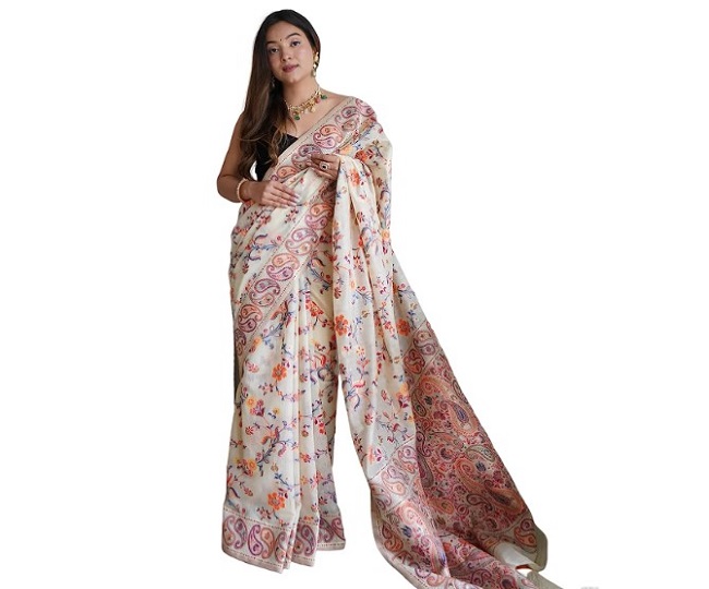 ऑफ व्हाइट कलर की साड़ी पसंद है, तो यह साड़ी आपके लिए बेस्ट च्वॉइस हो सकती है। इसमें आपको कश्मीरी पश्मीना वर्क मिलेगा, जो साड़ी की खूबसूरती को एक ही लेवल पर लेकर जाता है। इसको 69% के डिस्काउंट पर ऑर्डर करने के लिए अमेजन की यह Amazon Prime Day Sale देख सकते हैं।