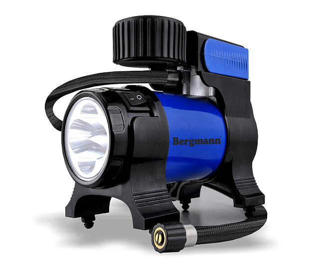 जैसा कि नाम से स्पष्ट है कि यह Bergmann Tyre Inflator एक हैवी ड्यूटी टायर इन्फ्लेटर है, जो 145/70 R12 की साइज वाले टायर को 0-30 psi की स्पीड पर केवल 2 मिनट में पूरी तरह से भर देता है। आप अंधेरे में भी अपना कार्य कर सकें इसके लिए इसे एलईडी लाइट के साथ पेश किया जाता है। Bergmann Tyre Inflator Price: Rs 2,137.