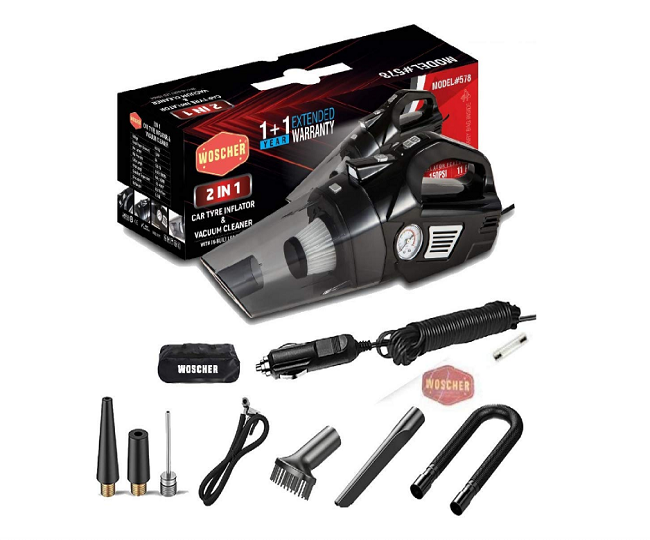 Woscher 578 2 in1 Tyre Inflator with Car Vacuum Cleaner