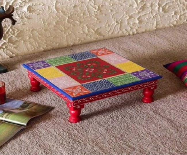 इस साल Navratri First Day पर माता की स्थापना के लिए डिजाइनर चौकी लेने की सोच रही हैं, तो इस चौकी का चुनाव कर सकती हैं। राजस्थानी कला और शिल्प लकड़ी की यह चौका काफी आकर्षक लगती है।