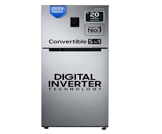 इस Samsung Double Door Fridge को 322 लीटर की क्षमता के साथ पेश किया जाता हैं और इसमें आपको 5 इन 1 कन्वर्टिबल मोड मिलते हैं। इस Best Fridge में खाना रखने के लिए 250 लीटर और फ्रीजर के लिए 70 लीटर मिलता है। इसकी मटेरियल की क्वालिटी बहुत ही स्ट्रांग है। Samsung Fridge Price: Rs 34,990.