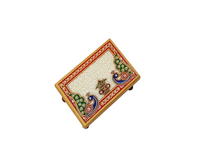 Handicrafts Paradise Peacock and Kalash Marble Pooja Chowki