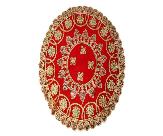 हाथ से बनाया गया यह मखमली सुंदर आसन गोल आकार का है जो Navratri में पूजा अनुष्ठानों के दौरान मूर्तियां स्थापित करने के लिए आदर्श है। इससे माता रानी की आराधना सदैव फलदायी होती है। इसका उपयोग प्रसाद थाल को ढकने के लिए किया जा सकता है।