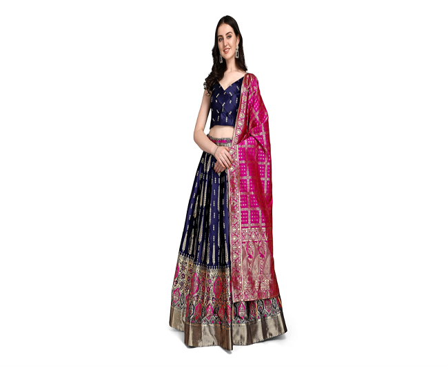 PURVAJA Women's Jacquard Semi-Stitched Lehenga choli