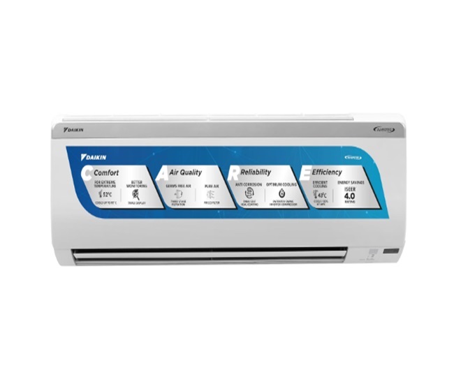 3 स्टार की पावर रेटिंग वाला यह कॉपर कंडेनसर कॉइल के साथ आता है और इसका 3डी एयरफ्लो और पीएम 2.5 फिल्टर यह सुनिश्चित करता है कि ठंडी हवा न केवल ठीक से प्रसारित हो, बल्कि अन्य गंदगी भी खत्म करता है। इसका इकोनो मोड कूलिंग क्षमता को स्मार्ट तरीके से एडजस्ट करते बिजली की खपत को कम करता है, जबकि पावर चिल मोड बिना किसी परेशानी के कमरे को तुरंत ठंडा कर देता है। Daikin AC Price: Rs 36,990.