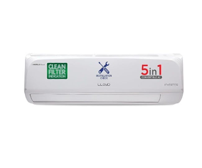 1.5 टन की क्षमता वाला यह Air Conditioner 170 वर्ग फुट के लिए उपयुक्त है और यह 52 डिग्री तक की गर्मी में अपना काम कर सकता है। इसे 5 इन 1 कूलिंग मोड और एंटी वायरल फिल्टर दिया गया है और चूकि यह एक इन्वर्टर कंप्रेसर के साथ आने वाला लॉयड स्प्लिट एसी है।