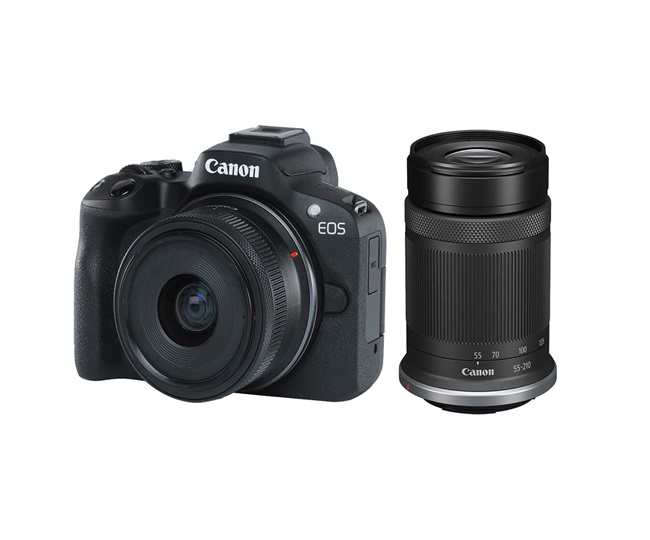 कैनन कैमरा EOS R50 मिररलेस कैमरा 18-45mm और 55-210mm लेंस के साथ आता है साथ ही इसमें -7.1 IS STM टेलीफ़ोटो ज़ूम लेंस आता है। यूज़र्स ने भी इसे अच्छी रेटिंग्स दी है। Canon DSLR Camera Price: Rs 97,995.