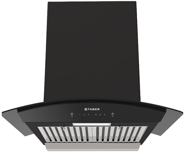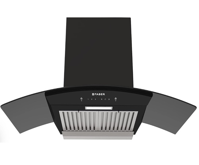पिरामिड शेप में आने वाली यह Chimney Faber बैफल फ़िल्टर के साथ आती है, जो हैवी ग्रिलिंग और फ्राई के लिए सूटेबल है। यह फैबर किचन चिमनी कर्व्ड ग्लास के साथ ब्लैक फ़िनिश में मौजूद है, जिसको आप दीवार पर लगा सकते हैं।