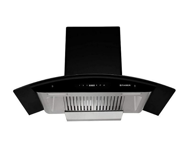 यह ब्लैक कलर में आती है, जो दिखने में बहुत ही स्टाइलिश है। इस Chimney For Kitchen का पिरामिड स्टाइल है और कर्व्ड ग्लास काफी मजबूत है। Faber Kitchen Chimney Price: Rs 6990.