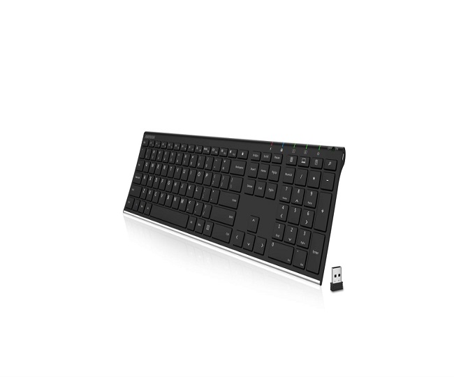 4. Arteck 2.4G Wireless Stainless Steel Ultra Slim Full Size Keyboard
