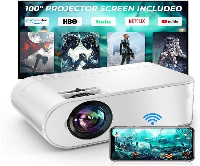 यह mini projector सफेद कलर में आता है। इसे यूजर्स ने 4.5 की रेटिंग दी है। यह वाईफाई प्रोजेक्टर आईओएस/एंड्रॉइड सिस्टम दोनों के लिए वाईफाई कनेक्शन को सपोर्ट करता है। यह प्रोजेक्टर ज़ूम फ़ंक्शन के साथ आता है। जो रिमोट का इस्तेमाल करने पर स्क्रीन की साइज को 100% से 75% तक छोटा कर सकता है। YABER Projector price: Rs13990.