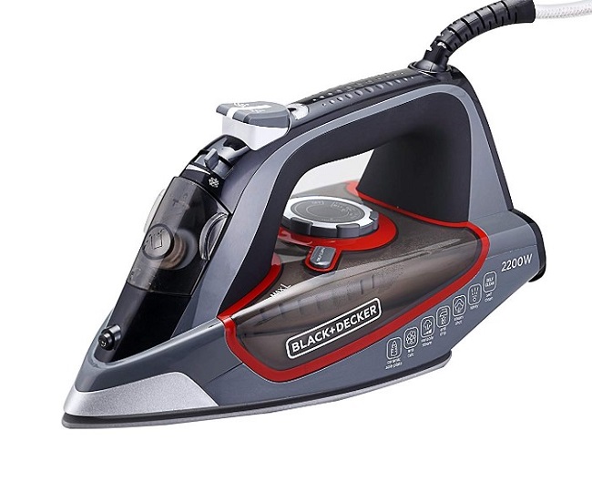 यह Iron Press 2200 वाट के साथ आती है। इस स्टीम आयरन के वाटर टैंक की कैपेसिटी 380 मिलीलीटर है। स्केल बिल्ड-अप को रोकने के लिए इसमें आपको एंटी-क्लॉक फ़ंक्शन मिलता है। इसका डिज़ाइन बहुत ही कॉम्पैक्ट है। Black + Decker Steam Iron Price: Rs 3199.