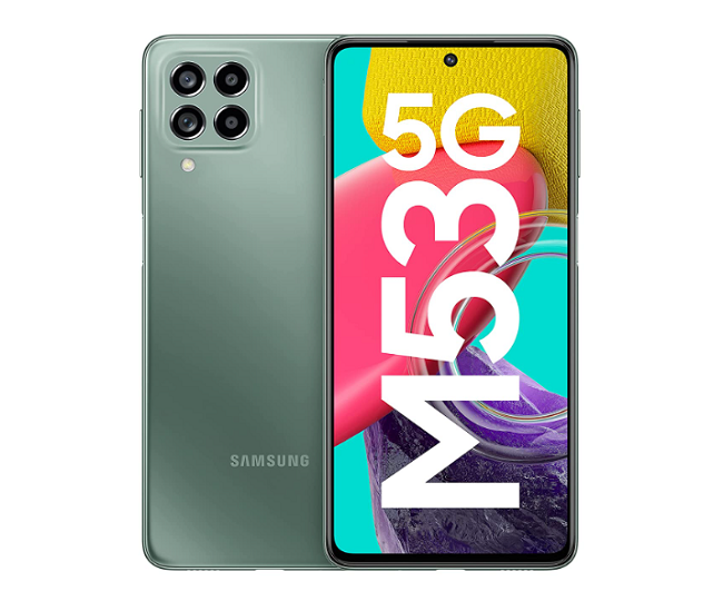 Samsung Galaxy M53 में 8GB मिलने वाली रैम को आप 16GB तक एक्सपैंड कर सकते हैं। यह 6.7-इंच सुपर AMOLED प्लस डिस्प्ले, FHD+ रेजोल्यूशन, 120Hz रिफ्रेश रेट के साथ 1080x2400 पिक्सल के साथ आता है। इसकी 5000 mAh बैटरी है, जो काफी लंबे समय चलती है। Samsung Galaxy M5 Mobile Phone Price: Rs 27999.