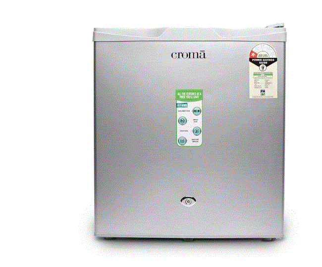 यह Croma Mini Refrigerator सेप्रेट चिलर कम्पार्टमेंट के साथ आता है। इस फ्रिज की कैपेसिटी 50 लीटर है। इसकी आउटर बॉडी पर आपको PCM फिनिश मिलती है। यह Small Fridge मैनुअल डीफ़्रॉस्ट और स्टील वायर शेल्फ फीचर के साथ आता है। इस फ्रिज पर आपको एक साल की वारंटी मिलती है। Croma Mini Refrigerator Price: Rs 9790.