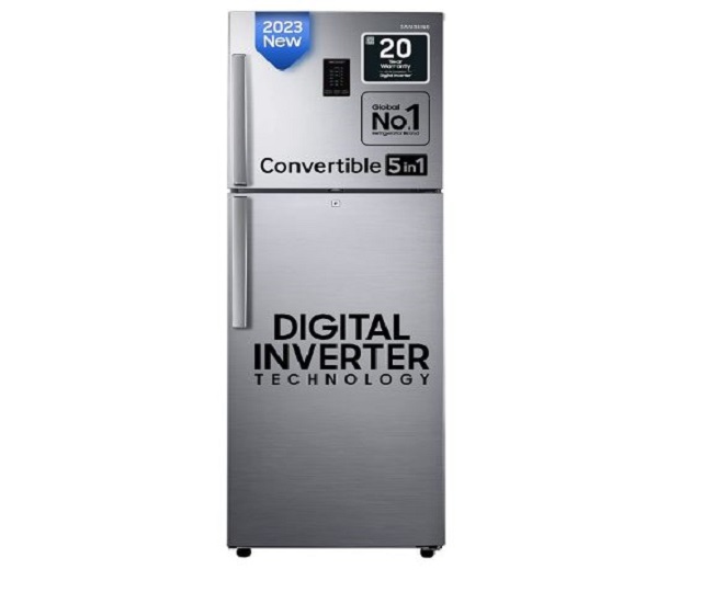 इस रेफ्रिजरेटर में 5 इन 1 डिजिटल इंवर्टर आपको मिल जाता है, इसके कम्प्रेशर पर 20 साल की वॉरंटी मिल जाती है। यह फ्रिज यूजर्स की ओर से टॉप रेटिंग के साथ पसंद किया गया है और 2 से 3 लोगों की फैमली के लिए यह बढ़िया ऑप्शन है। Samsung Refrigerator Double Door Price: Rs 35,490.
