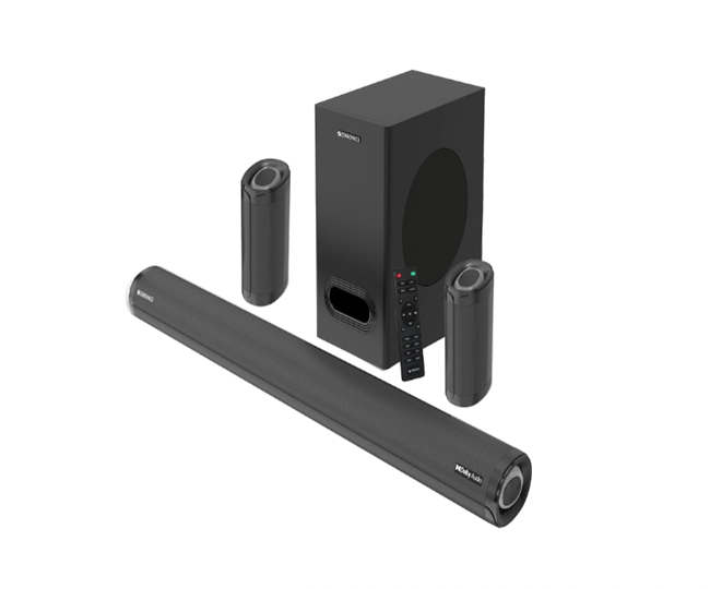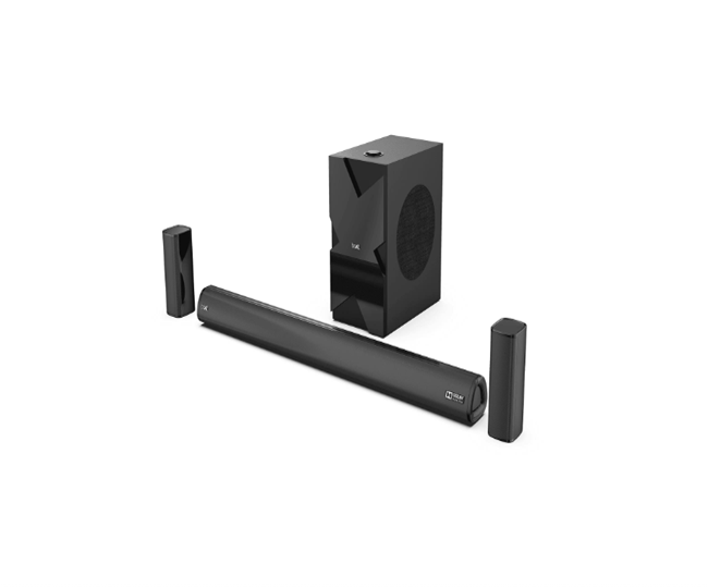 510 वॉट की पावरफुल डीप बेस साउंड देने वाला यह साउंडबार सराउंड साउंड का एक्सपीरियंस देता है। इससे ब्लूटूथ के साथ वायरलेस म्यूजिक स्ट्रीमिंग की जा सकती है। इस Sound System के साथ वायरलेस सबवूफर आता है जो थ्रिलर बेस देता है। यह टीवी रिमोट कंट्रोल के साथ काम करता है। इसके साथ वायरलेस सबवूफर, 2x वायरलेस सराउंड साउंड स्पीकर, बैटरी के साथ रिमोट आता है।