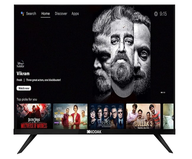 यह Kodak 4K TV अपने 3840x2160 पिक्सल के रेजोल्यूशन के साथ आपको शानदार विजुअल क्वालिटी प्रदान करता है और यह टीवी एंड्रॉइड ऑपरेटिंग सिस्टम पर संचालित होता है, जो कि कई तरह के ऐप्स और कंटेंट की पहुंच को सुनिश्चित करता है। इस 43 Inch LED TV में 40 वॉट की क्षमता वाला सराउंड साउंड स्पीकर सिस्टम है और अन्य फीचर्स के रूप में इसे वाई-फाई और ब्लूटूथ तकनीक मिलता है। यह Television सेट अमेजन प्राइम, सोनी लिव और यूट्यूब आदि को सपोर्ट करता है। Kodak Android TV Price: Rs 18,999.