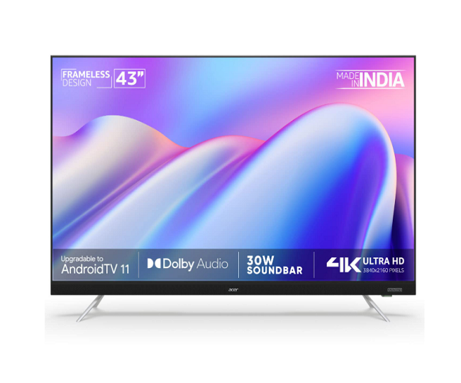 यह Acer LED TV वास्तव में ब्रांड के फ्रेमनेस सीरीज के तहत आने वाली 4K Ultra HD TV है, जिसमें आपको जबरदस्त पिक्चर क्वॉलिटी और दमदार साउंड मिल जाता है। इस Acer Android TV में नेटफ्लिक्स, प्राइम वीडियो और यूट्यूब को भी देखने की सुविधा मिल जाती है। 64 बिट क्वाड कोर प्रोसेसर पर संचालित होने वाली इस टीवी को 2GB रैम का रैम 16GB स्टोरेज मिल रही है। Acer Smart TV Price: 25,989.