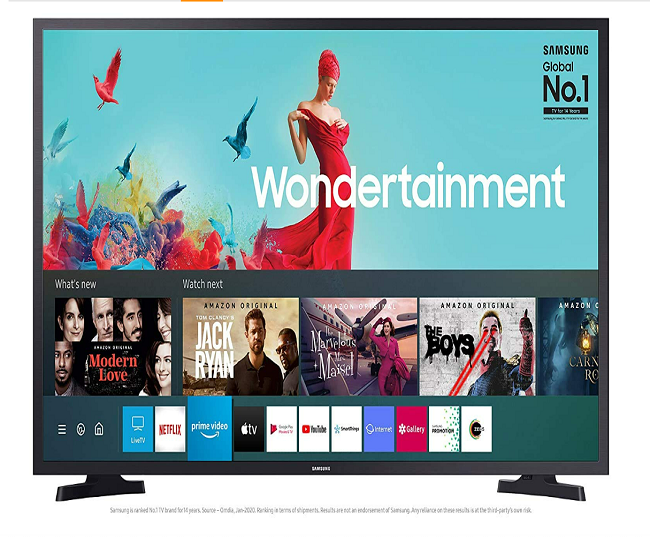 43 इंच की स्क्रीन साइज वाली यह Samsung TV ब्रांड के वंडरटेनमेंट सीरीज के तहत आती है और इसमें आपको नेटफ्लिक्स, प्राइम वीडियो, जी5, सोनी लिव, जियो TV, यूट्यूब, हॉटस्टार और ऐप्पल टीवी जैसे इंटरनेट प्लेटफार्म को भी देखने की सुविधा मिलती है। इस Samsung Full HD TV के साथ वाइस असिस्टेंस, स्मार्टथिंग्स ऐप, पर्सनल कंप्यूटर और होम क्लाउड जैसे स्मार्ट फीचर्स की भी पेशकश की जाती है। Samsung LED Smart TV Price: Rs 28,990.