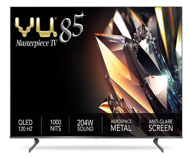 QLED TV प्लेटफार्म पर संचालित होने वाली यह VU Smart TV भी सूची के सबसे बड़े दावेदारों में से एक है और इस 85 Inch TV को लोकल डिमिंग, वाइड कलर एन्हांसर, ब्लू लाइट फ़िल्टर, वाइड व्यूइंग एंगल और एम्बिएंट लाइट सेंसर जैसे फीचर्स मिलता है। यह Smart TV नेटफ्लिक्स, प्राइम वीडियो, ज़ी5, वूट, जियोसिनेमा, सोनीलिव, यूट्यूब और हॉटस्टार जैसे कई OTT प्लेटफार्म को सपोर्ट करता है। VU QLED TV Price: Rs 2,98,998.