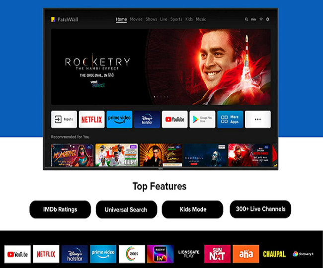 यूट्यूब, प्राइम वीडियो और नेटफ्लिक्स को सपोर्ट करने वाला यह रेडमी टीवी आपको घर में ही सिनेमा हाल जैसा माहौल देता है। जबरदस्त पिक्चर क्वालिटी और बेहतरीन साउंड के लिए इस टेलीविजन को 4K अल्ट्रा एचडी (3840 x 2160) की रिजॉल्यूशन, 60 हर्ट्ज का रिफ्रेश रेट, 178 डिग्री व्यूइंग एंगल और डॉब्ली ऑडियो के साथ 30 वॉट का साउंड स्पीकर मिलता है। Redmi Smart TV Price: Rs 57,999.