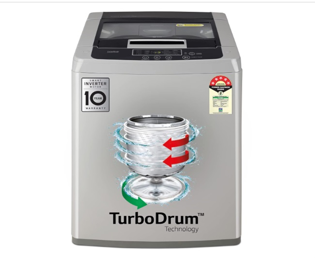 यह एलजी वॉशिंग मशीन टर्बोड्रम तकनीक और विभिन्न प्रकार के वॉश प्रोग्राम का इस्तेमाल करती है और इससे धोने वाले कपड़े फ्रेश और क्लीन दिखते हैं। यह 7KG वॉशिंग मशीन टर्बोड्रम के साथ फुली ऑटोमेटिक टॉप लोड वॉशिंग मशीन है, जो कि बेहतरीन धुलाई गुणवत्ता देने के साथ किफायती भी है और इस्तेमाल करने में काफी आसान है। यह धोने और सुखाने दोनों का कार्य करता हैं। LG Washing Machine Price: Rs 17,490.