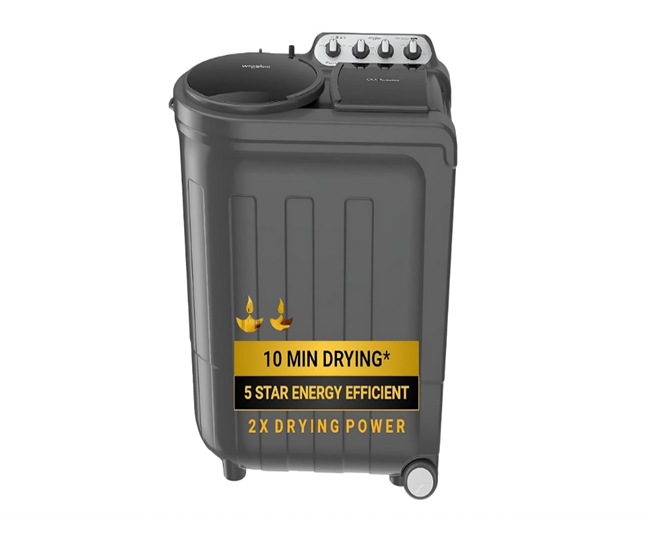 इसमें बड़े पहिये लगे हैं ताकि आप मशीन को आसानी से इधर-उधर घुमा सकें जिससे यह अधिक मजबूत और स्थिर हो जाए। यह वाशिंग मशीन आसानी से 6-7 बेडशीट धोने के लिए डिज़ाइन की गई है। Whirlpool Washing Machine Price: Rs 12,270.