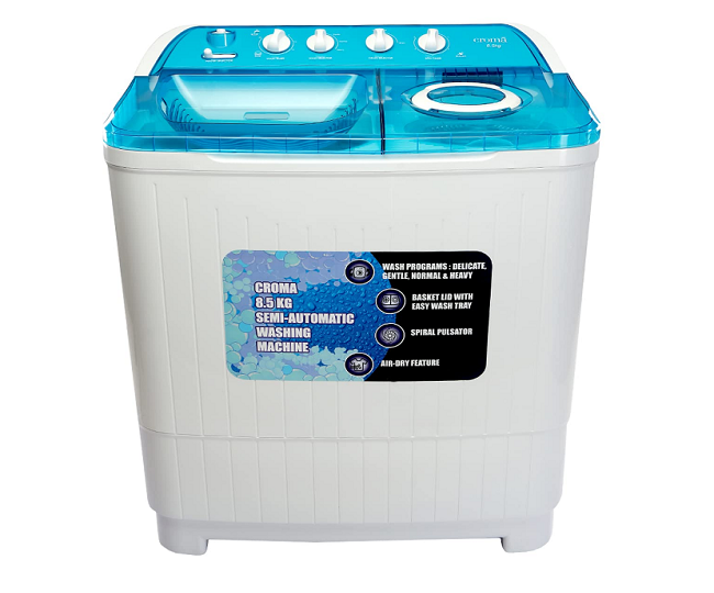 यह Croma Washing Machine वास्तव में एक टॉप लोड सेमी ऑटोमेटिक वॉशिंग मशीन है, जिसे 8.5kg की क्षमता के साथ पेश किया जाता है। इसमें आपको 5-स्टार की पावर रेटिंग मिल जाती है, जो बिजली की कम खपत को सुनिश्चित करता है। आपके लिए यह वॉशिंग मशीन 4 वॉश प्रोग्राम, साफ्ट क्लोजर ग्लास लिड, एडजेस्टेबल लेग और शॉक ऑप्शन के साथ उपलब्ध है। Croma Washing Machine Price: Rs 11,490.