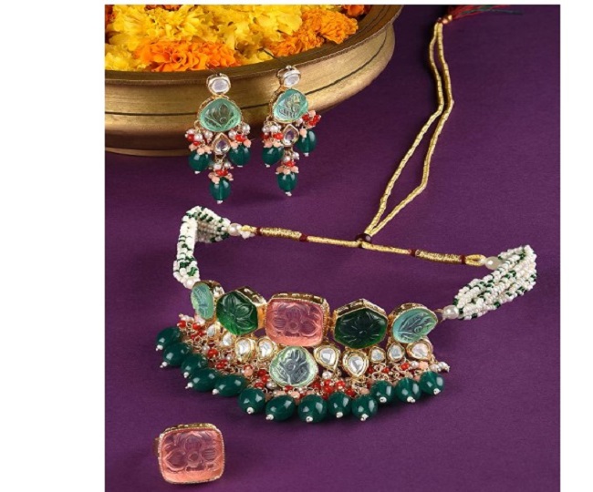 मल्टी कलर में आने वाला यह Jewellery Set for Women बहुत ही खूबसूरत है। इसमें चोकर डिजाइन का नेकलेस दिया है, जिसे बनाने के लिए मल्टी कलर स्टोन और बीड्स का इस्तेमाल किया गया है।