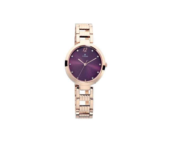 2. Titan Purple Fashion Basics Analog Red Dial Ladies Watch