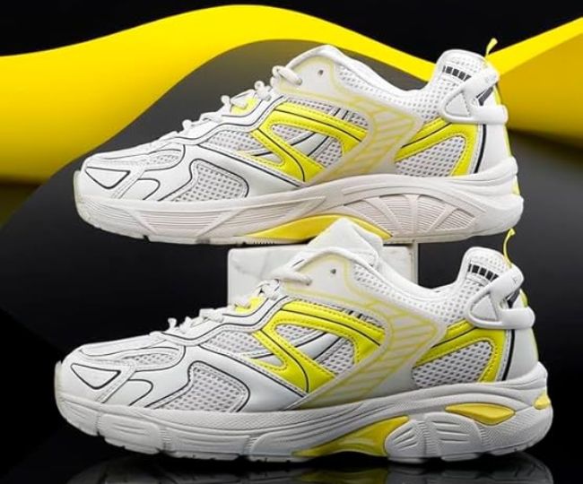 व्हाइट एंड येलो कलर का यह स्नीकर काफी स्टाइलिश है। यह ओपन-होल मेश और कर्वी सिंथेटिक ओवरले अपर डिजाइन के साथ आता है। यह काफी आरामदायक होते हैं। कैजुअल ड्रेस पर पहनना हो या फिर स्पोटर्स के लिए चाहिए हो, यह स्नीकर काफी बढ़िया और बेस्ट ऑप्शन है। इसकी आउटसोल रबर की बनी होती है।