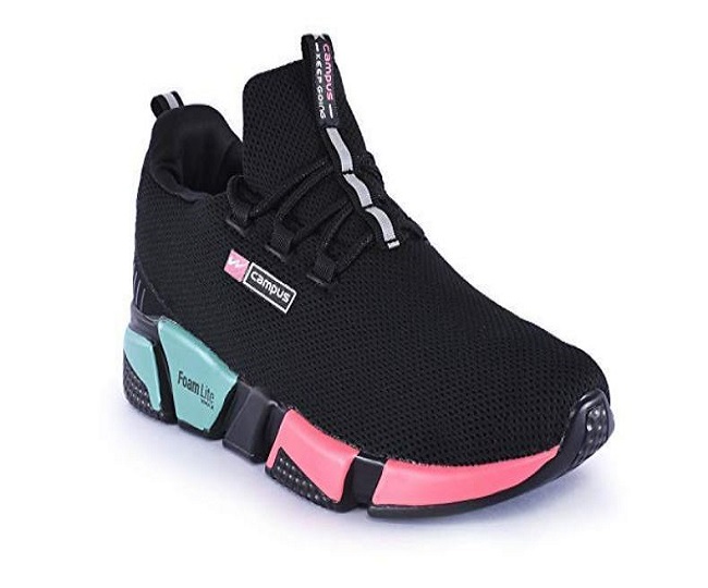 ब्लैक कलर ये Women's Shoes Sports बेहद अच्छी क्वालिटी के है। ये जल्दी से गन्दा नहीं होते हैं और वजन में बहुत हल्के हैं। इसमें आपको लैस अप क्लोज़र मिलता है और मिडयम शूज विड्थ मिलती है। ये Women's Sports Shoes पहनने में बहुत ही कम्फर्टेबल है। Campus Womens Sports Shoes Price: Rs 489.