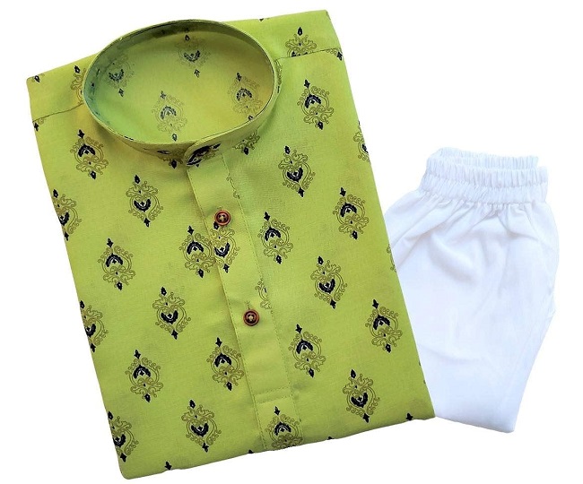 ग्रीन और वाइट कलर के कॉन्बिनेशन में आने वाला बच्चों का यह Kurta Pyjama पहनने के बाद काफी स्टाइलिश लुक देता है। इसकी सॉफ्ट कॉटन की फैब्रिक बच्चों का कंफर्टेबल फील देती हैं। इसी वजह से इसे काफी पसंद किया जाता है।