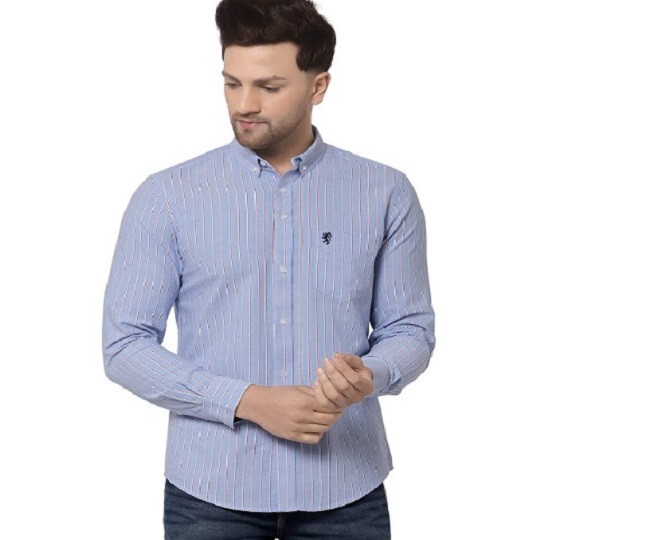 स्काई ब्लू कलर की यह शर्ट बहुत ही सुंदर है। इस Mens Shirts Online में आपको स्ट्रिप मिलती है। यह शर्ट पहनने पर बहुत ही अट्रैक्टिव लुक देती है।