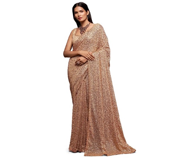किसी पार्टी या स्पेशल इवेंट के लिए आप इस Latest Sarees Collection में बताई गई इस साड़ी को वार्डरॉब में ऐड कर सकती हैं। गोल्डन कलर की यह साड़ी आपको किसी भी फंक्शन की जान बना देगी। इस साड़ी पर हेवी सीक्वेंस वर्क किया हुआ है, जो काफी खूबसूरत है।