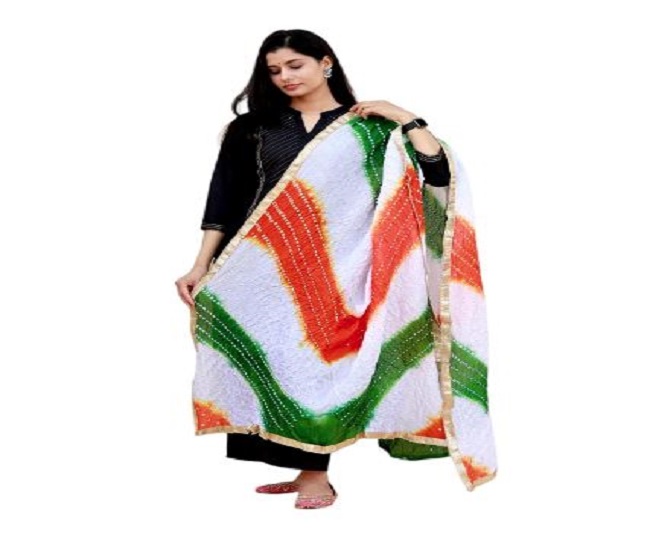 इस पर राजस्थानी वर्क किया गया है और तिरंगे के रंगों को डिजाइनर लुक दिया गया है। इस 15 August Independence Day पर सिम्पल प्लेन सूट के साथ यह दुपट्टा कैरी कर सकती हैं और ट्रेडिशनली मार्डन लुक पा सकती हैं। LAKHDATAR Dupatta Price: Rs 399.