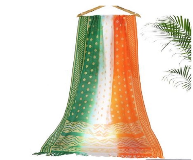 इस Independence Day 2023 को खास और अलग अंदाज में सेलिब्रेट करने के लिए इसे प्लेन सूट के साथ पेयर किया जा सकता है। इसमें तिरंगे के तीनों कलर दिए गए हैं, जो इस स्वत्रंता दिवस पर आपको काफी स्टाइलिश लुक देगा। YOZLY Dupatta Price: Rs 269.