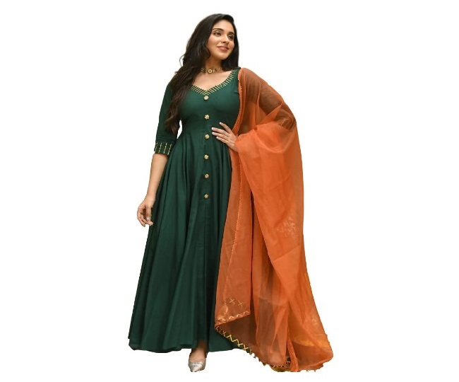 यह ग्रीन कलर का Anarkali Kurta Set बहुत ही सुंदर है। इसका अनारकली पैटर्न बहुत ही स्टाइलिश और सुंदर है। इस Anarkali Kurti के साथ मैचिंग का दुप्पटा आता है।