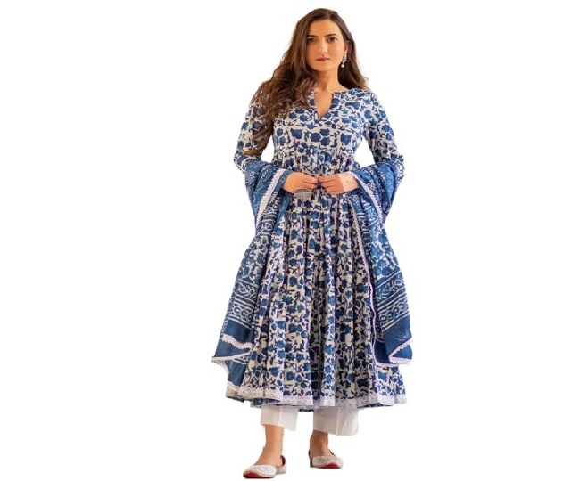 ब्लू कलर के इस अनारकली कुर्ता सेट को आप डेली पहन सकती हैं। इस Best Anarkali Kurti का फैब्रिक बहुत ही सॉफ्ट और कम्फर्टेबल हैं। इस Anarkali Kurta Set के साथ आपको प्लाज़ो और दुप्पटा भी मिलता है।