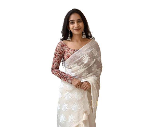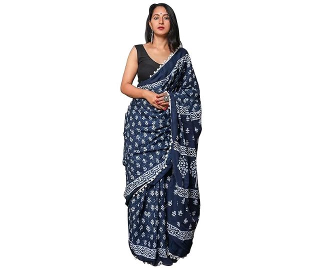 ब्लू रंग में आने वाली चंदेरी साड़ी खासतौर पर महिलाओं के लिए डिजाइन की गई है। इसे कॉटन के फैब्रिक से बनाया गया है, जिसकी वजह से यह पहनने में काफी आरामदायक है। इसमें आपको दो कलर ऑप्शन मिलेंगे, जिन्हें आप अमेज़न से अपनी पसंद के हिसाब से खरीद सकते हैं।